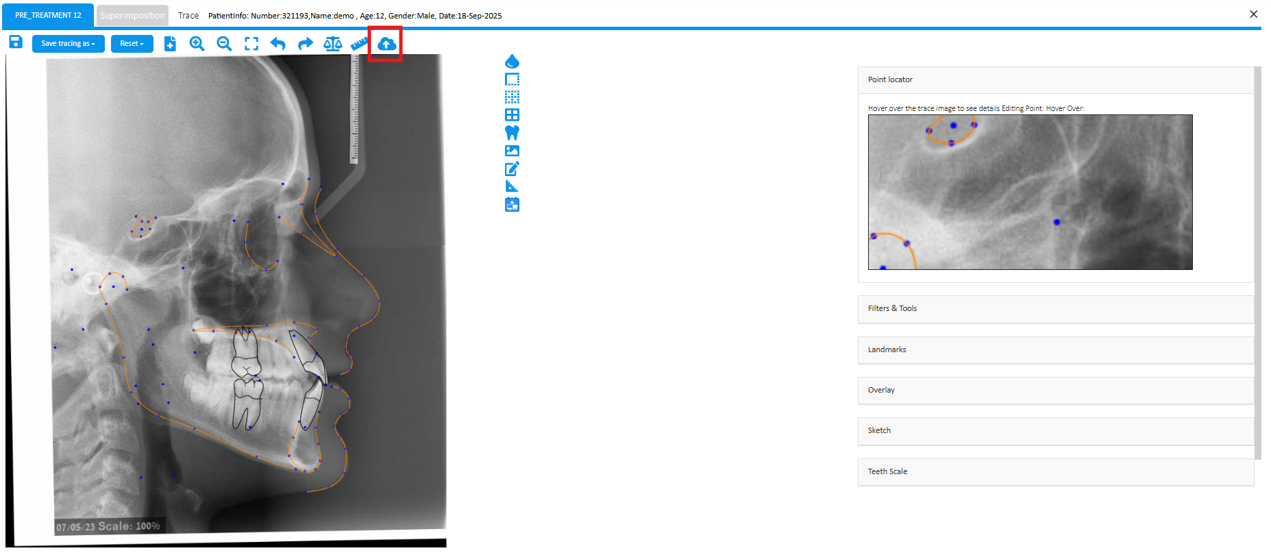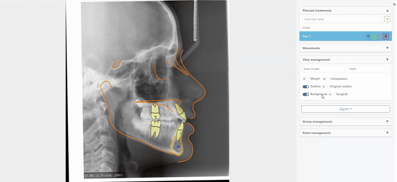 A next-generation feature – the VTO, turns a standard 2D cephalometric X-ray into a dynamic, interactive planning tool that lets clinicians simulate and visualize orthodontic or surgical treatment outcomes directly on the image. It helps predict jaw and tooth movements, visualize soft tissue changes, and compare different treatment scenarios, making it easier to communicate plans clearly and confidently. By bridging the gap between diagnosis and patient understanding, VTO makes treatment planning more precise, visual, and intuitive.