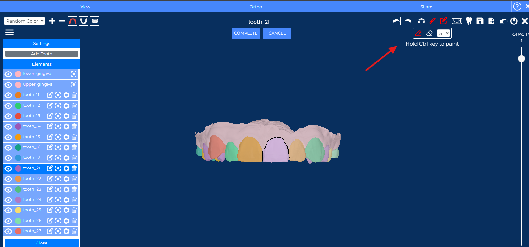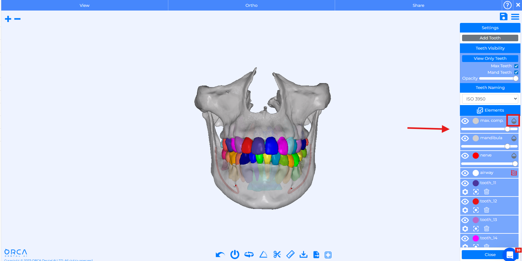 Simply click the Drop icon to reveal per-element opacity controls and refine your view for more accurate treatment planning.